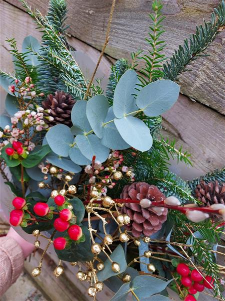 Do you love all the Christmas foliage? This is the hand tied bouquet for you.. This contains a florist pick of mixed scented Christmas foliage such as Eucalyptus and all things Christmassy.